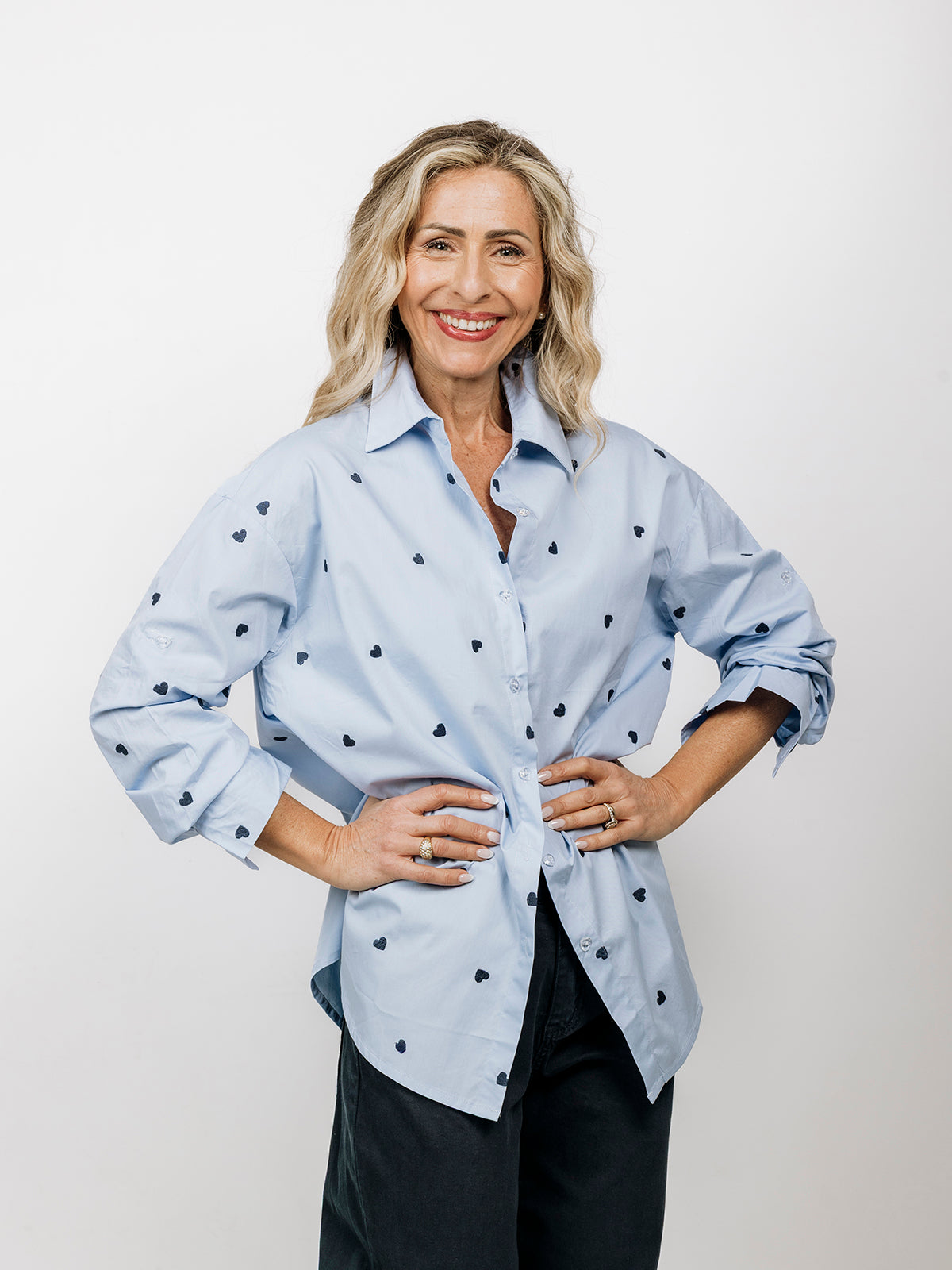 Camicia con cuoricini blu, disponibile nella variante bianca e celeste. Vestibilità morbida ed elegante allo stesso tempo, con dettagli di bottoncini a forma di cuore trasparenti. Perfetta abbinata ad un jeans o un pantalone blu della nuova collezione Spring di Sottotetto.
