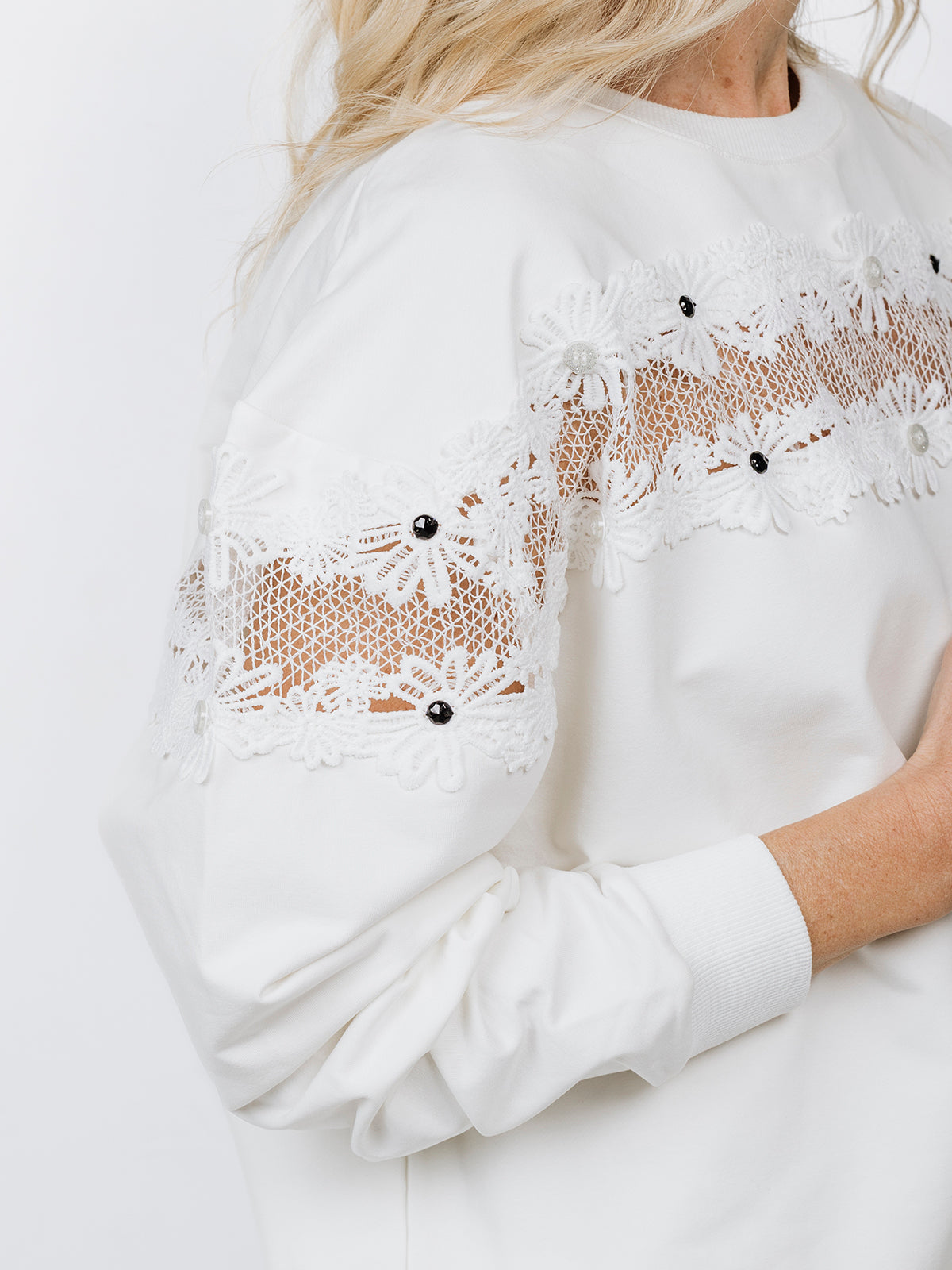 GIROCOLLO CON INSERTO IN PIZZO E PANTALONE IN LUREX