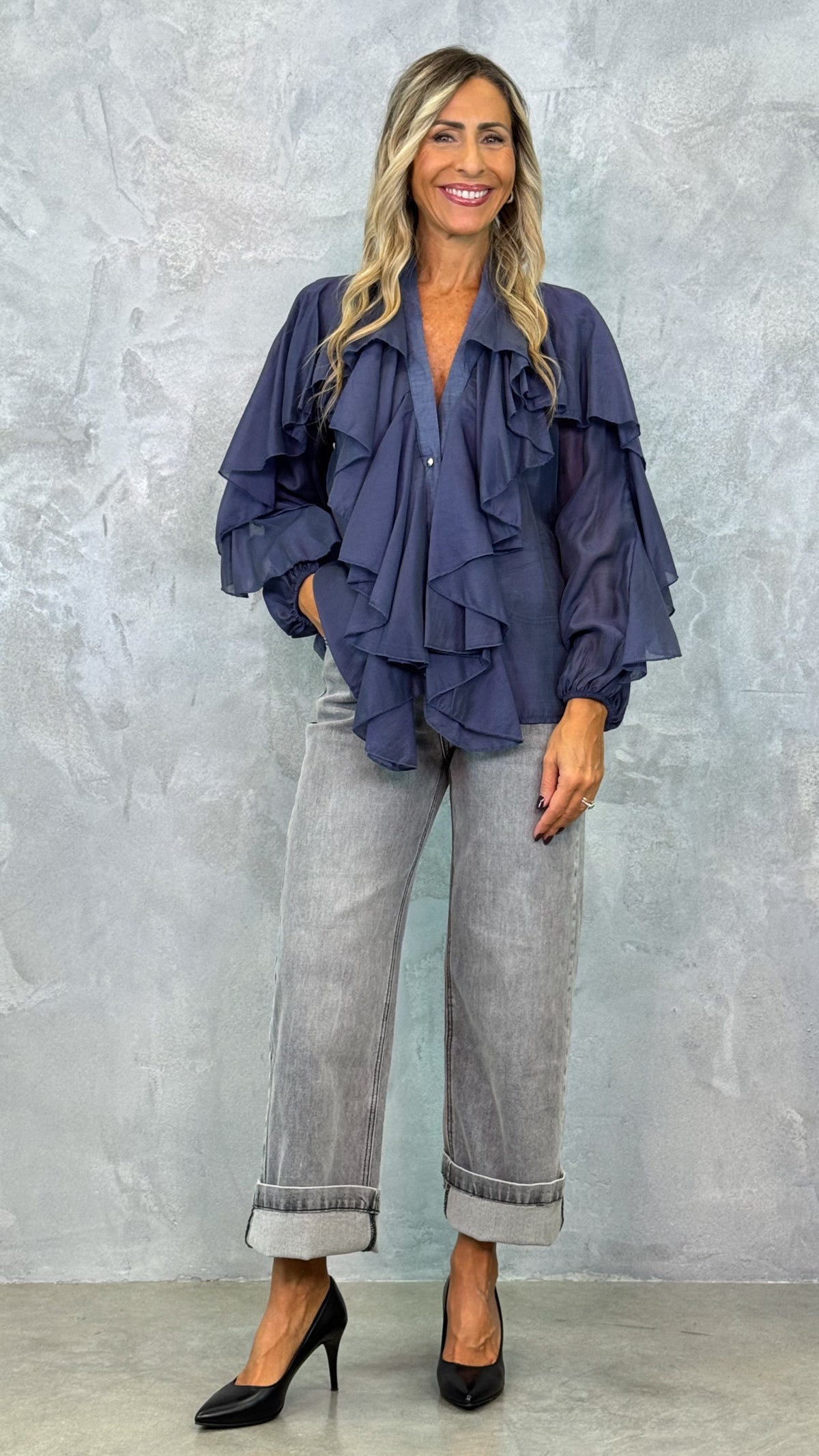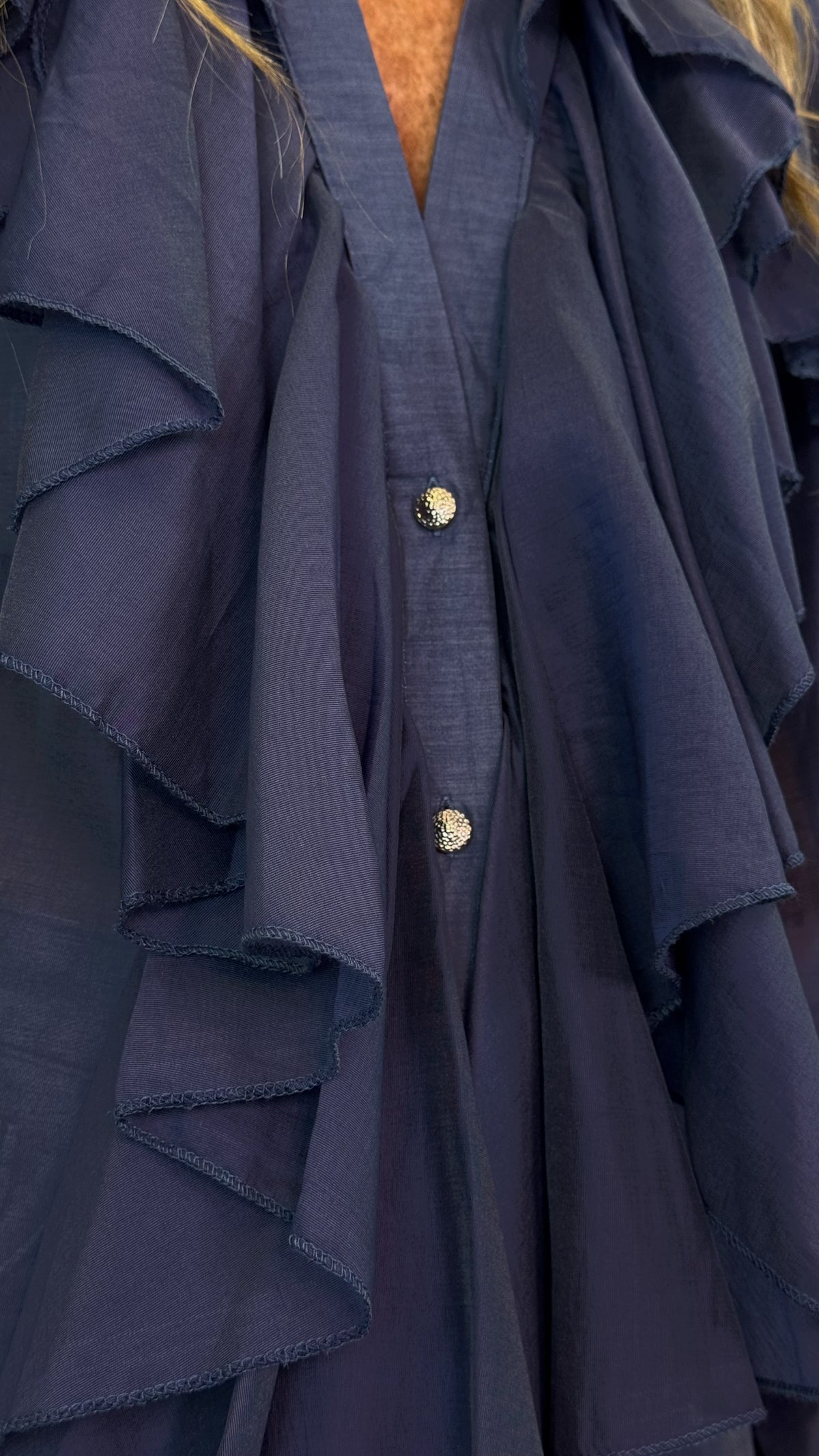 Camicia tinta unita con rouge sul davanti e sulle maniche, morbida nel fit, leggera e raffinata, con dettagli di bottoncini oro a contrasto.